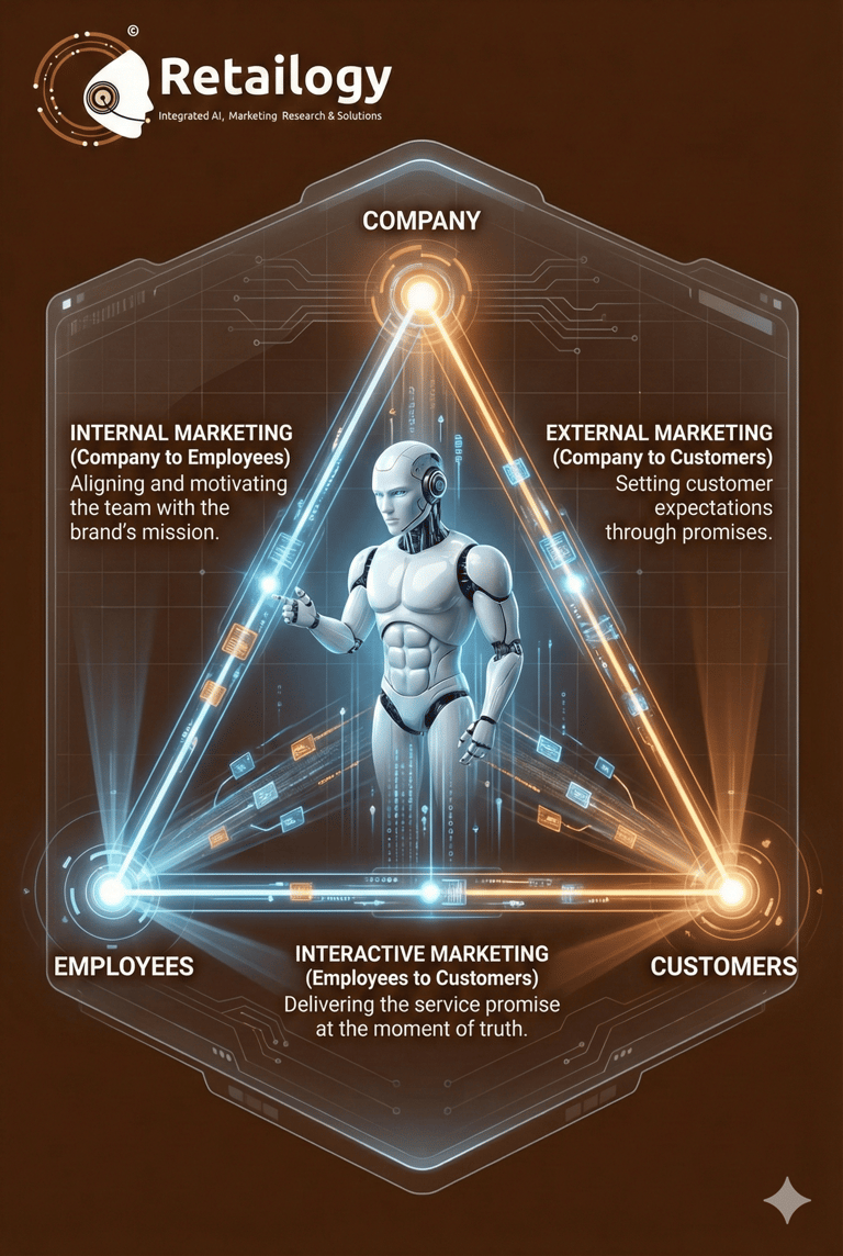 External Marketing (Company to Customers): This encompasses all traditional marketing efforts used to set customer expectations, such as advertising, pricing, and public relations. It is the promise the company makes to the market.